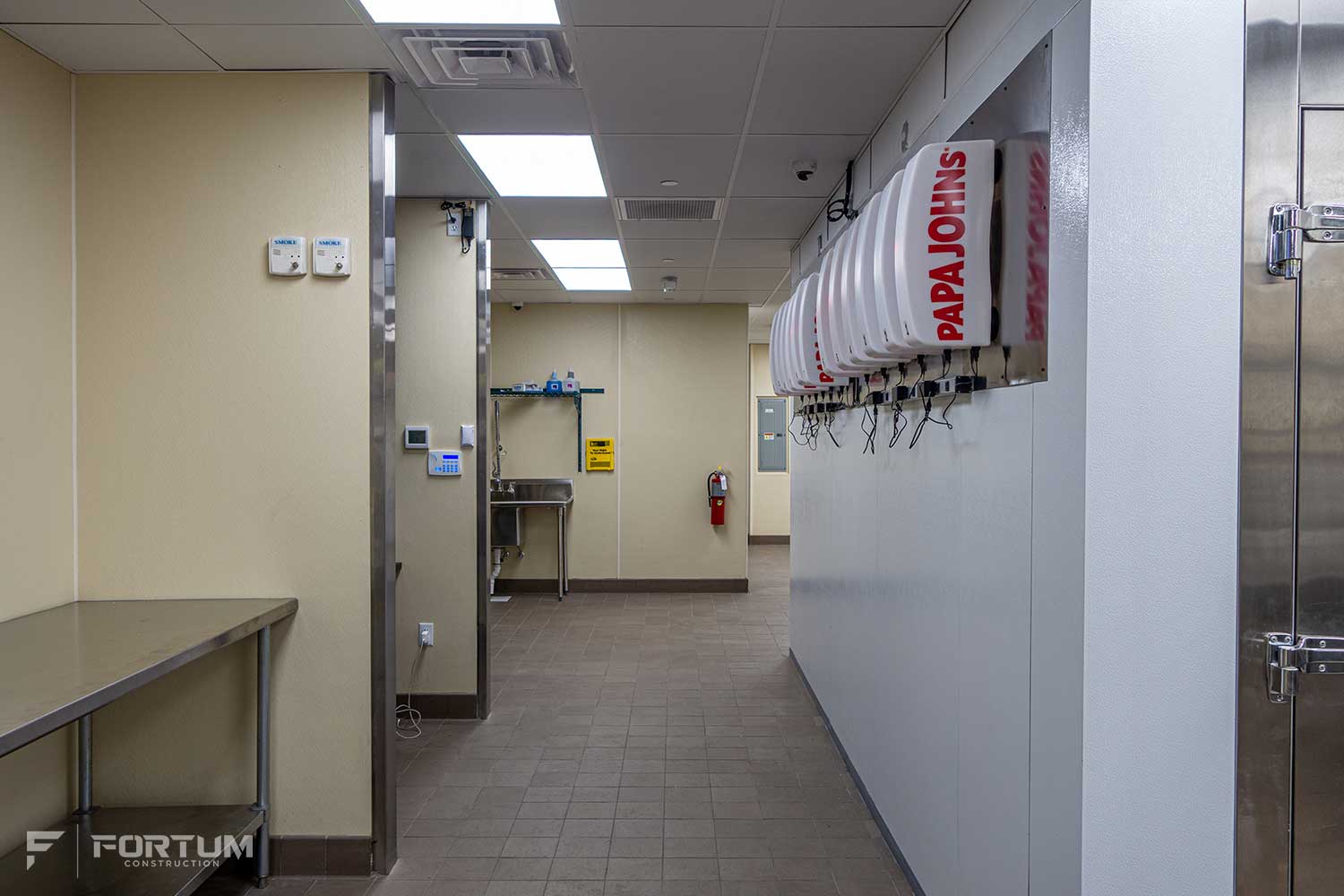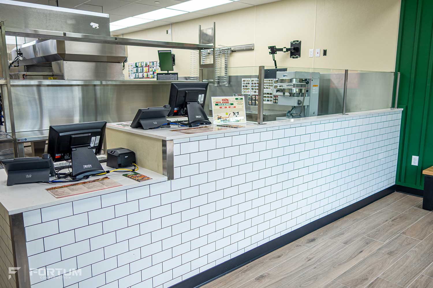 Papa John’s Turtle Crossings was a 1,800 SF vanilla box space that was converted into a Quick Service Pizza Restaurant and it entailed the installation of a New Grease Trap, Natural Gas Line, new Roof Top Units, Pizza Ovens, and Hood to serve the Back of House functionality with new Papa John’s store concept finishes in the Front of House.
